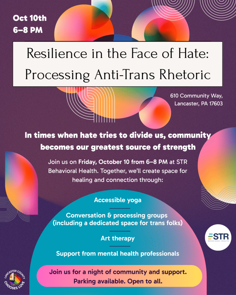 In the face of increasing anti-trans rhetoric, it’s more important than ever to come together as a community. This evening will be a space to process, heal, and connect.