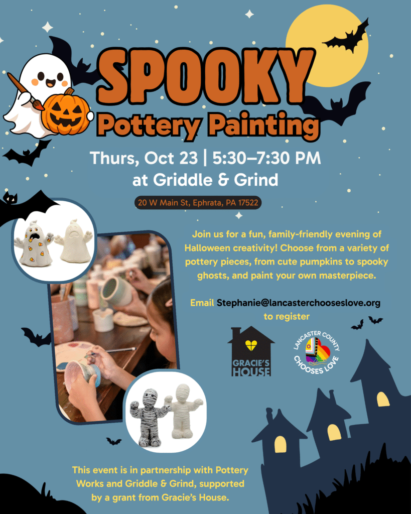 Join us for a fun, family-friendly evening of Halloween creativity! Choose from a variety of pottery pieces, from cute pumpkins to spooky ghosts, and paint your own masterpiece.